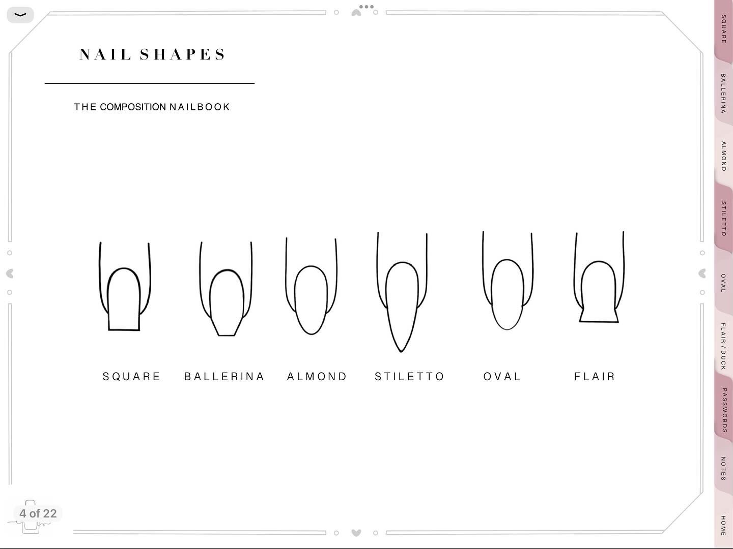 The Composition Nailbook was created for nail artists, nail technicians, and nail content creators. Create nail drafts for press-ons and prepare for your appointments by pre-planning your designs and color choices.